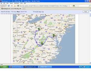 It is possible that Jackson visited Roanoke, since John Randolph, a frequent correspondent during the Nullification Crisis, resided there, but I can’t imagine him dropping down to Roanoke, then going back up to Wheeling. (See the map to the right.) Nor does it make sense that he would go overland through Virginia and East Tennessee on a trip between Nashville and Washington, D.C.