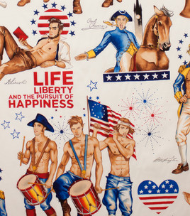 I’m speechless. Because nothing says “Founding Fathers” chic like fabric depicting them in A & F skin-revealing poses.