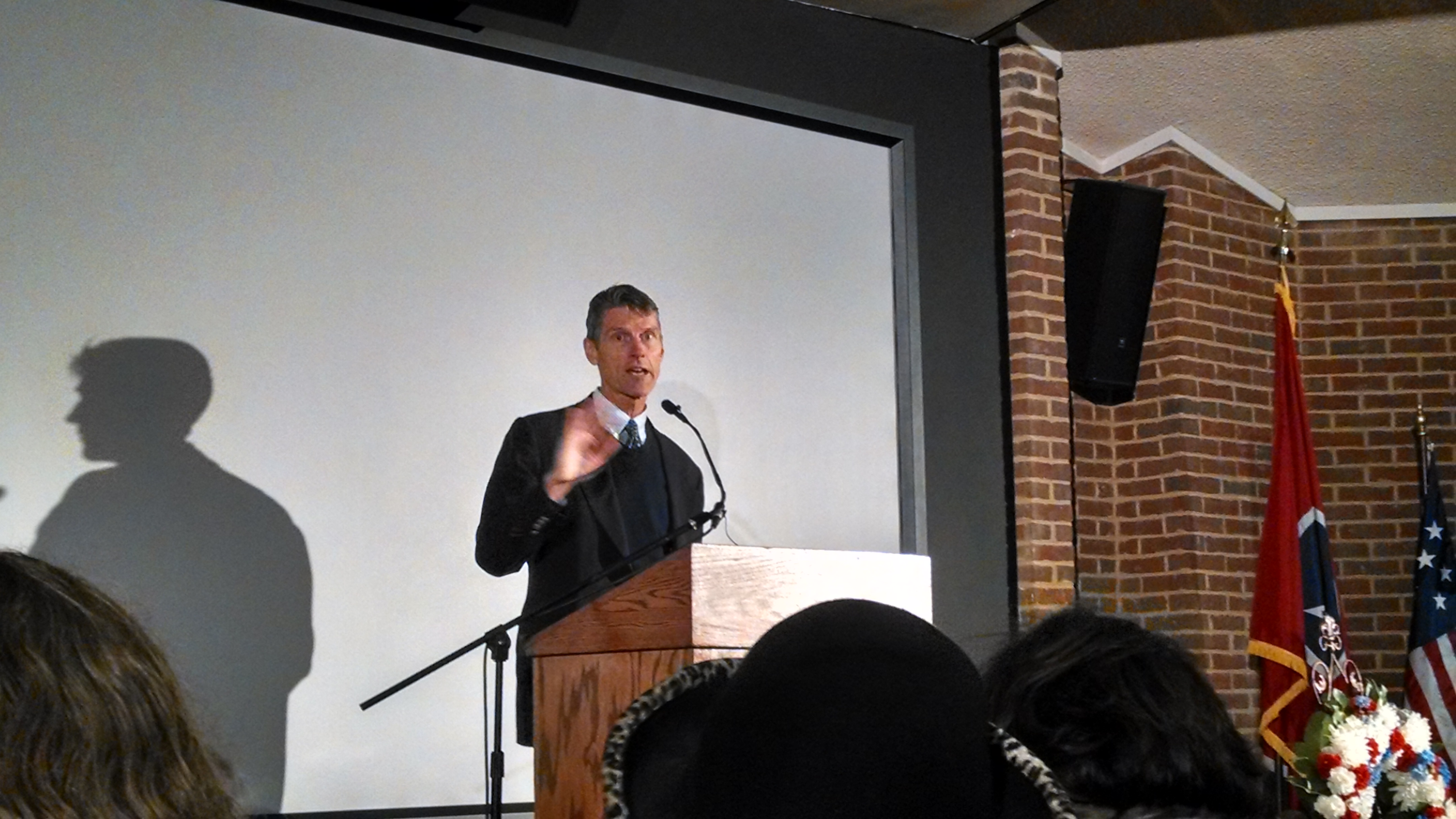 Bill Brands gave the keynote talk at the traditional wreath-laying ceremony. (The ceremony took place at the tomb, but everything else, thankfully, was inside.)